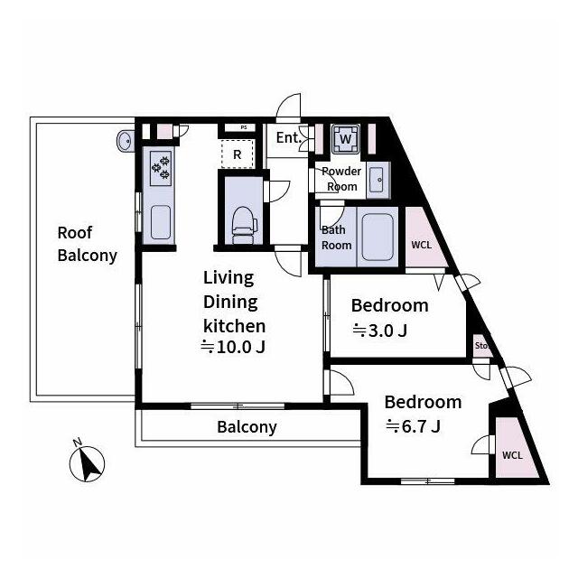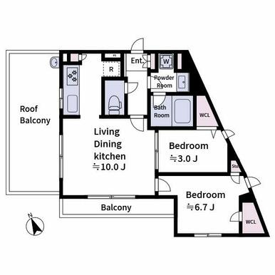 | 間取り | 2LDK(洋6.7、洋3、LDK10) | 主要採光面 | 北東 |