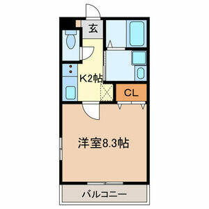 | 間取り | 1K(洋8.3・K2.0) | 主要採光面 | 西 |