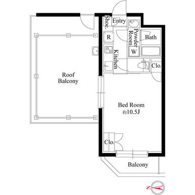 | 間取り | 1K(洋0) | 主要採光面 | 西 |