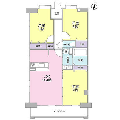 3LDK(洋6 洋6 洋7 LDK14.4) |