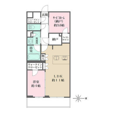 | 間取り | 1SLDK(LDK11 洋室4 納戸(S)3.6) | 主要採光面 | 東 |
