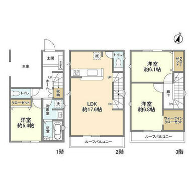 3LDK(LDK17.6 洋6.8 洋6.1 洋5.4) |